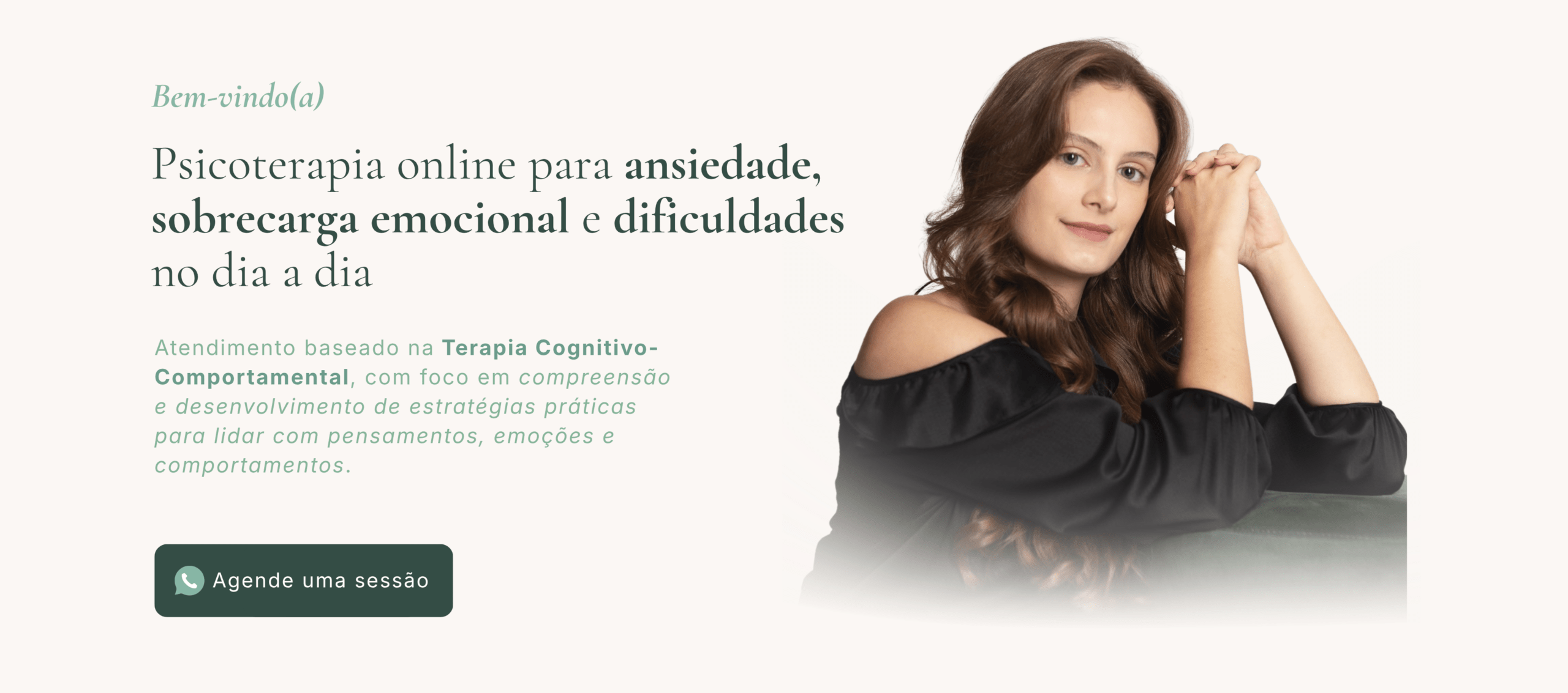 Com base na Terapia Cognitivo-Comportamental (TCC), os atendimentos têm foco prático e colaborativo, ajudando você a promover mudanças reais e possíveis no seu dia a dia.